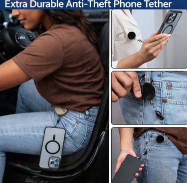 Introducing the Anti-Theft Phone Strap by Securisee, your ultimate companion for security and convenience. Crafted from robust zinc alloy and the strongest manmade fibers, this retractable phone tether ensures your device is always within reach while providing unparalleled durability. Whether you're navigating busy public transport or crowded events, rest assured that your phone is securely attached and safe from theft or accidental drops. With its universal design, it easily connects to any smartphone, whether you use a case or a grip. Lightweight and sleek, this discreet lanyard is perfect for everyday use, allowing you to connect it to your pants, purse, or bag without added bulk. Stay connected and secure with Securisee! As an Amazon Associate I earn from qualifying purchases.
